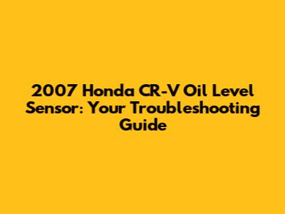 2007 Honda CR-V Oil Level Sensor: Troubleshooting & Replacement