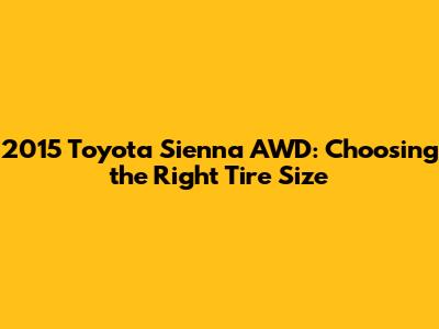Hey guys! Are you a proud owner of a 2015 Toyota Sienna AWD and scratching your head about the right tire size? You've come to the right place! Choosing the correct tire size is super important for your vehicle's performance, safety, and overall driving experience. Let's dive into everything you need to know to make the best choice for your minivan.