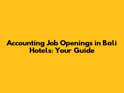 Accounting Job Openings In Bali Hotels: Your Guide