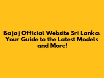 Bajaj Sri Lanka: Official Website & Latest Models