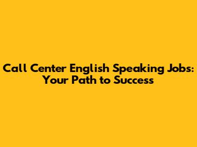 Call Center English Speaking Jobs: Your Path To Success