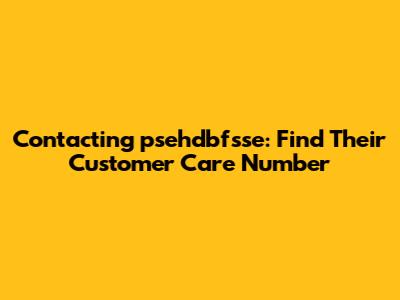 Contacting Psehdbfsse: Find Their Customer Care Number