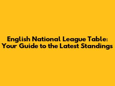 English National League Table: Your Guide To The Latest Standings