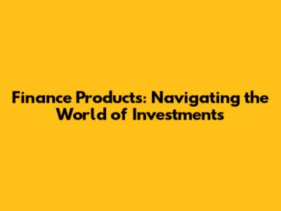 Understanding Finance Products