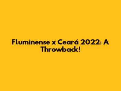 Fluminense Vs Ceará 2022: A Throwback!