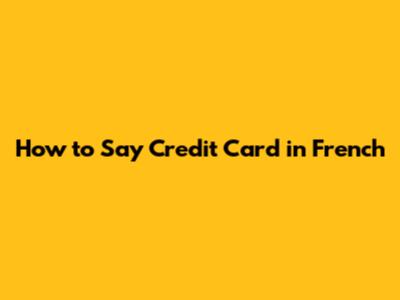 How To Say 'Credit Card' In French
