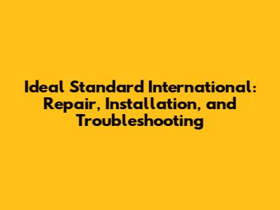Ideal Standard: Repair, Installation, And Troubleshooting