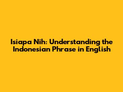 Isiapa Nih: Understanding The Indonesian Phrase In English