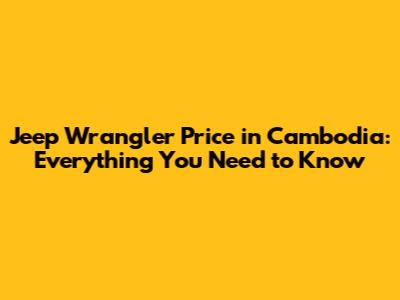 Jeep Wrangler Price In Cambodia: Your Complete Guide