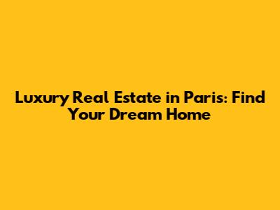Luxury Real Estate In Paris: Find Your Dream Home