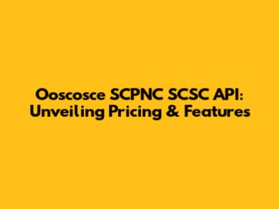 Ooscosce SCPNC SCSC API: Unveiling Pricing & Features