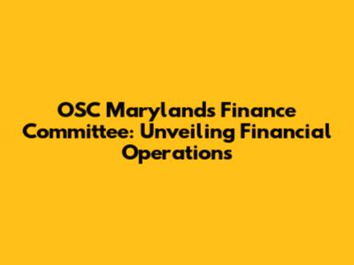 OSC Maryland's Finance Committee: What You Need To Know