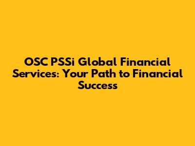 OSC PSSi Global Financial Services: Your Path To Financial Success