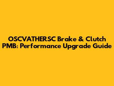 OSCVATHERSC Brake & Clutch PMB: Performance Upgrade Guide