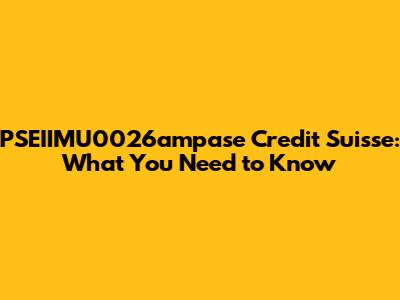 PSEIIMU0026ampase Credit Suisse: What You Need To Know