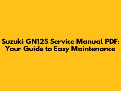Suzuki GN125 Service Manual PDF: Your Guide To Easy Maintenance