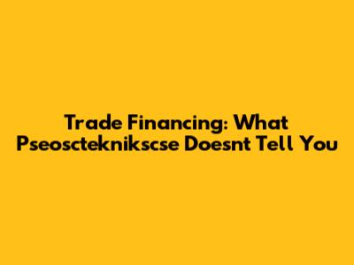 Trade Financing: What Pseoscteknikscse Doesn't Tell You