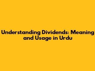 Understanding Dividends: Meaning And Usage In Urdu