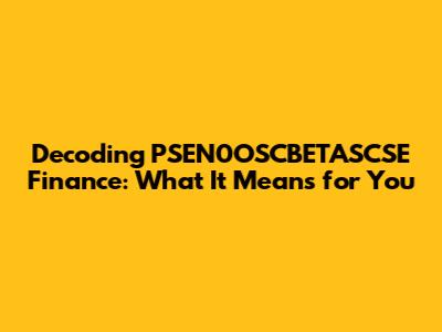 Hey guys, ever stumbled upon a financial term that sounds like a secret code? PSEN0OSCBETASCSE finance meaning might be one of those head-scratchers. But don't worry, we're here to break it down! In the world of finance, jargon can be a real minefield, and understanding these specific terms is crucial for anyone trying to navigate the markets, manage investments, or even just grasp the news. This article is all about demystifying terms like PSEN0OSCBETASCSE, exploring what it could potentially represent, and why understanding such nomenclature matters in the broader financial landscape. We'll dive deep into how specific financial phrases, even seemingly obscure ones, can reveal insights into market trends, investment strategies, and the underlying mechanisms of financial institutions. So, grab your coffee, get comfy, and let's unravel this financial mystery together. Understanding these terms isn't just about sounding smart; it's about making informed decisions in a complex economic environment. Whether you're a seasoned investor or just dipping your toes into the financial waters, clarity on terminology can significantly impact your financial literacy and your confidence in managing your money. We aim to provide you with a clear, concise, and engaging explanation that cuts through the noise and gets straight to the heart of what terms like PSEN0OSCBETASCSE might signify.