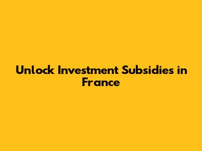 Unlock Investment Subsidies In France