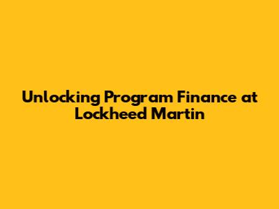 Unlocking Program Finance At Lockheed Martin