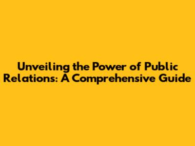 Unveiling The Power Of Public Relations: A Comprehensive Guide
