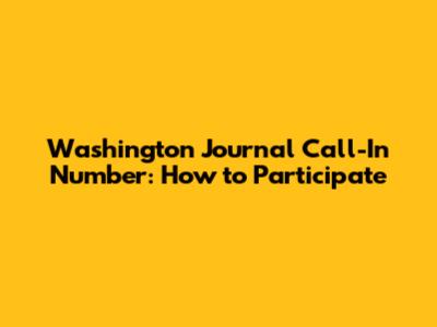 Washington Journal Call-In Number: How To Participate